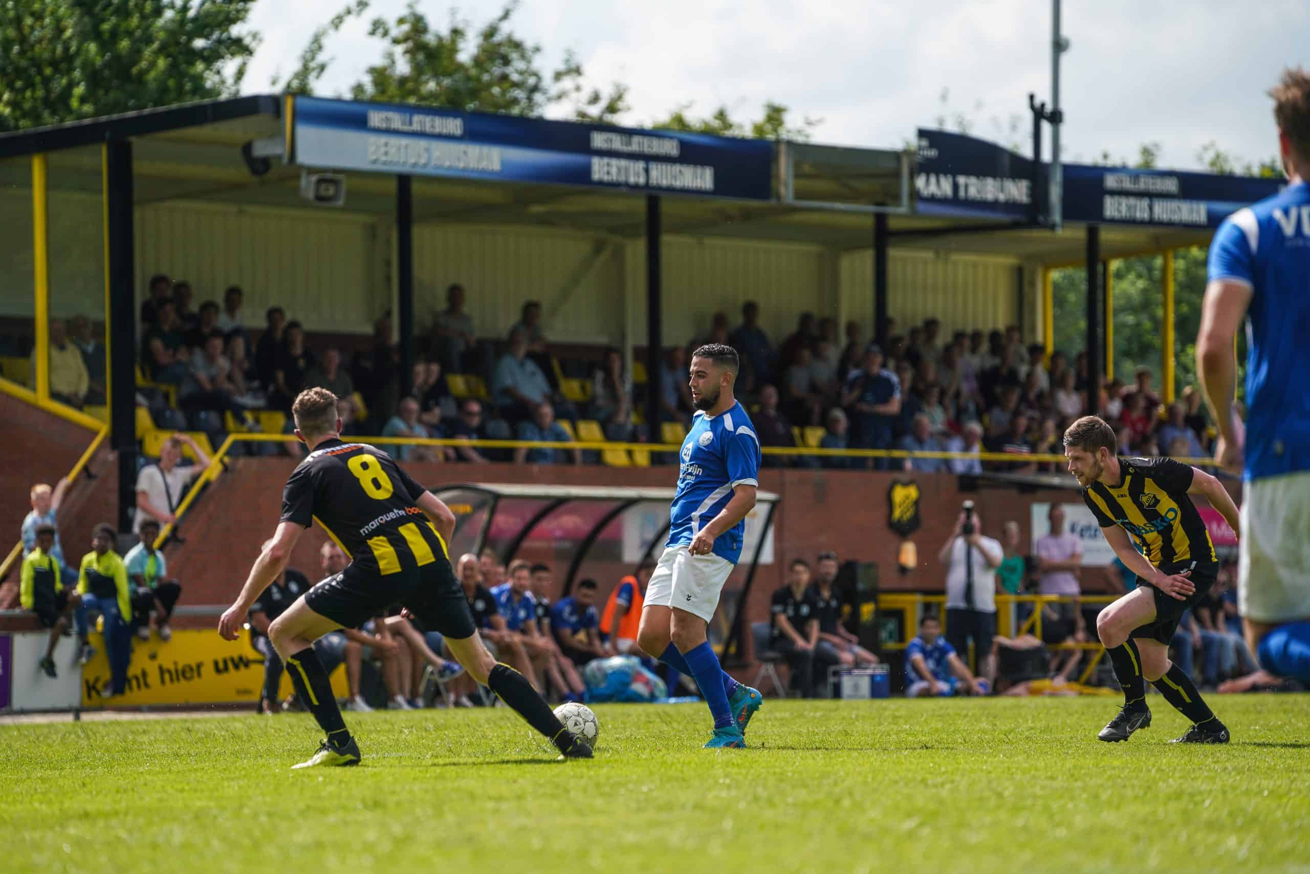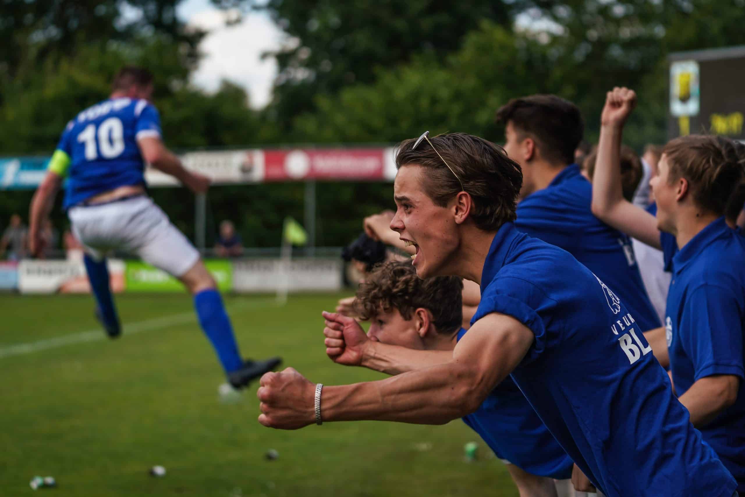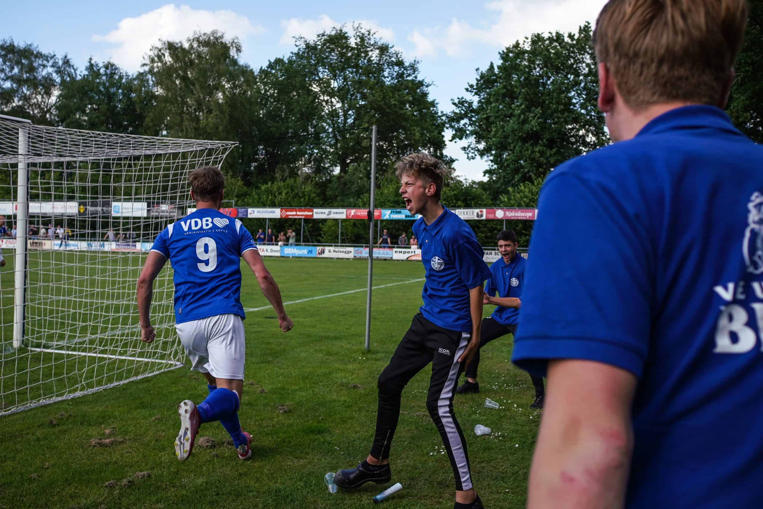In de eerste helft van de verlenging blijven de blauwen achter dezelfde goal staan. Dit keer dus achter hun eigen keeper, de voormalig doelman van onder andere Excelsior en VVV-Venlo, Jordy Deckers. De korte pauze tussen het eindsignaal en de verlenging lijken verlammend te hebben gewerkt. Zowel langs de kant als op het veld ontbreekt de beleving. Of het te maken heeft met het spelen naar de fanatieke blauwe aanhang zullen we nooit zeker weten, maar de tweede 15 minuten van de verlenging is de beleving bij Veensche Boys weer terug. Halverwege het laatste kwartier wordt Nitert weer gepasseerd.